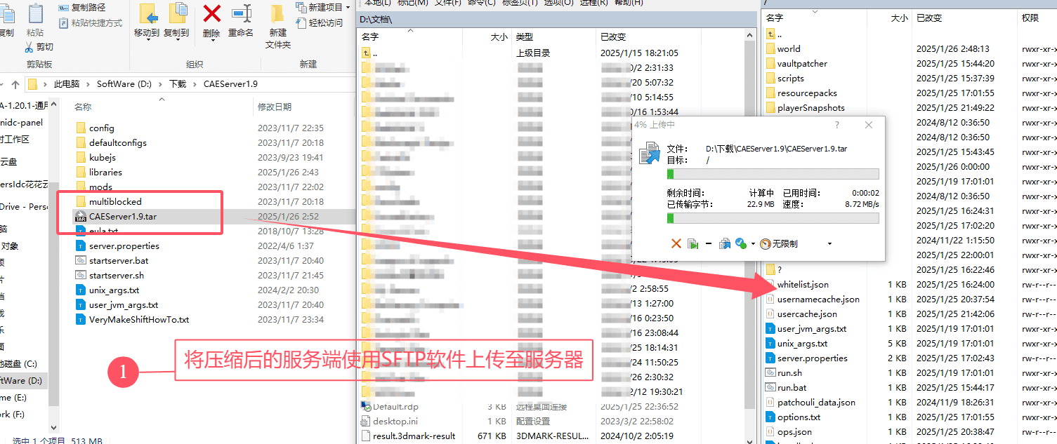 如文件数量过多上传速度慢,请使用BandiZip软件压缩为Tar格式后进行上传