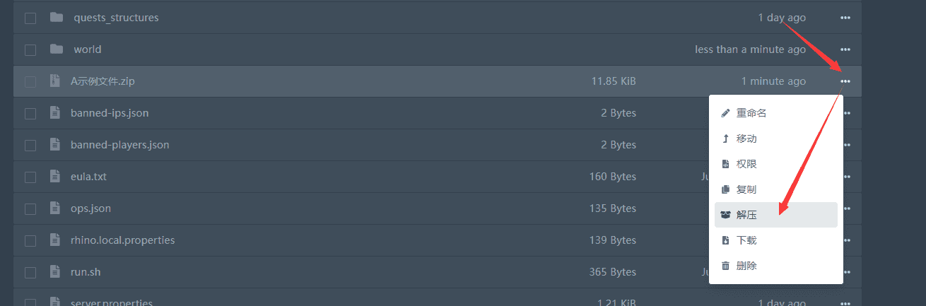 上传文件至服务器-打开面板控制台-文件栏-找到需要解压的文件-点击解压即可
